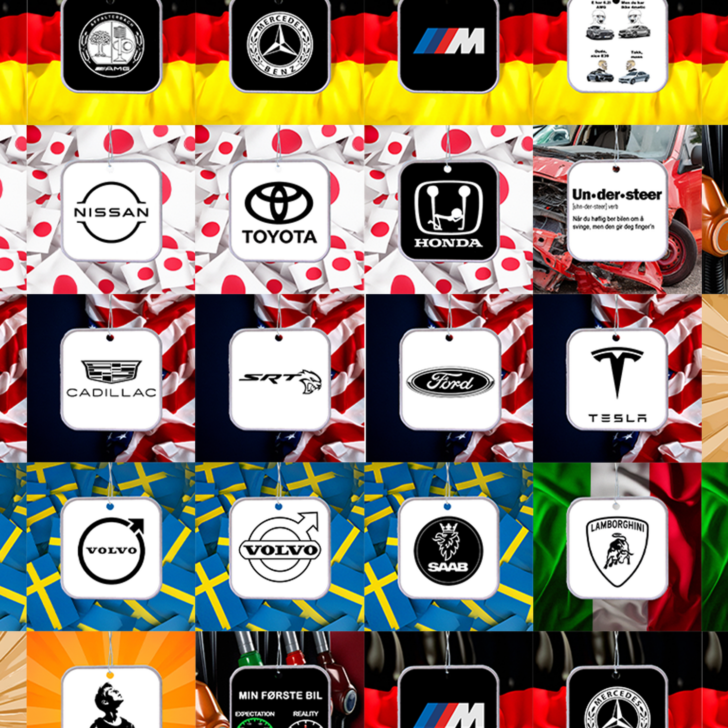 Vi har også luftfriskere med bilmerker, til lavere pris grunnet at de tar mye mindre tid å lage.